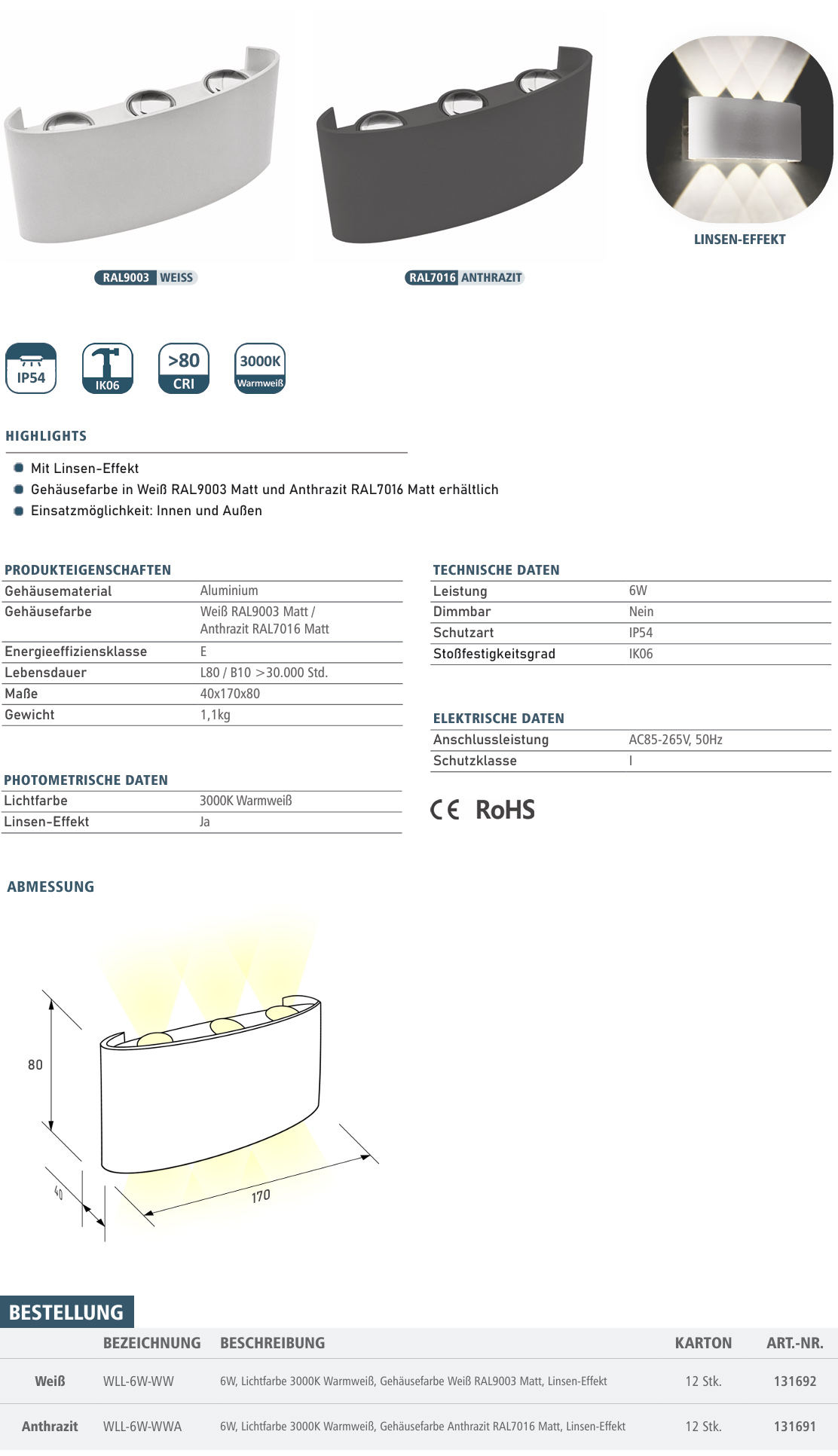 Gehäusefarbe und RAL Code | Weiß RAL9003 matt / Anthrazit RAL7016 matt |