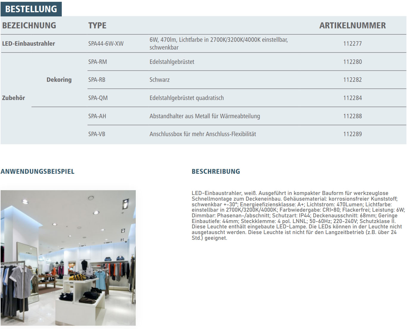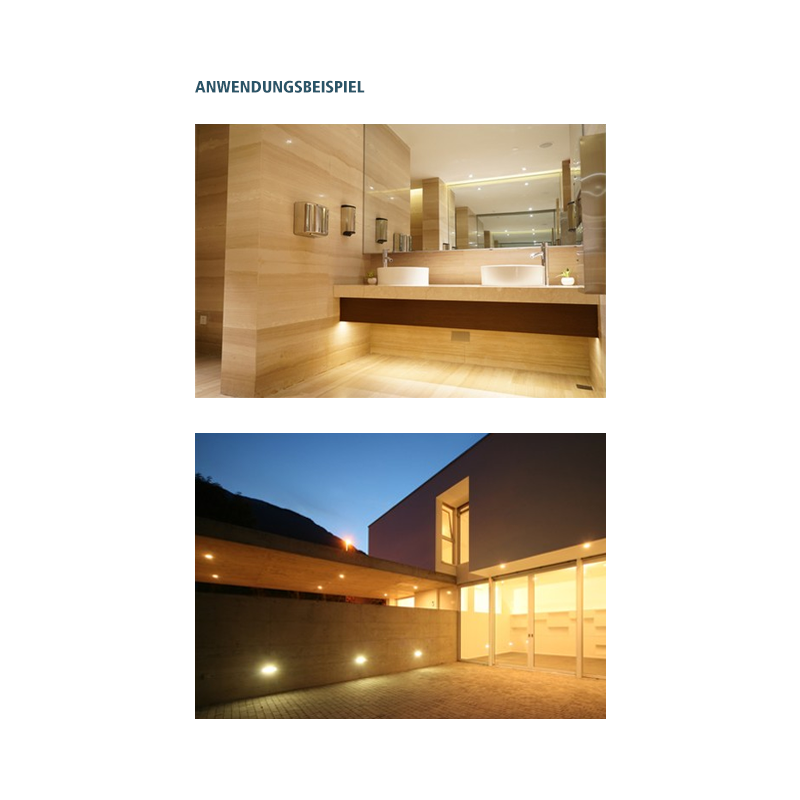 - Lichtfarbe 3-stufig in 2700K/3200K/4000K über DIP-Schalter einstellbar