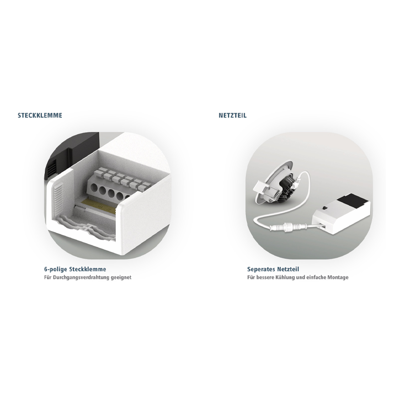- Hochwertiger Einbaustrahler mit Aluminium-Gehäuse und Gehäusetemperatur gringer durch externes Netzteil