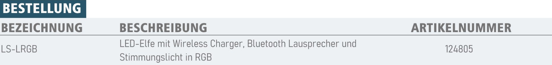 LED-Elfe mit Wireless Charger, Bluetooth Lautsprecher und Stimmungslicht in RGB