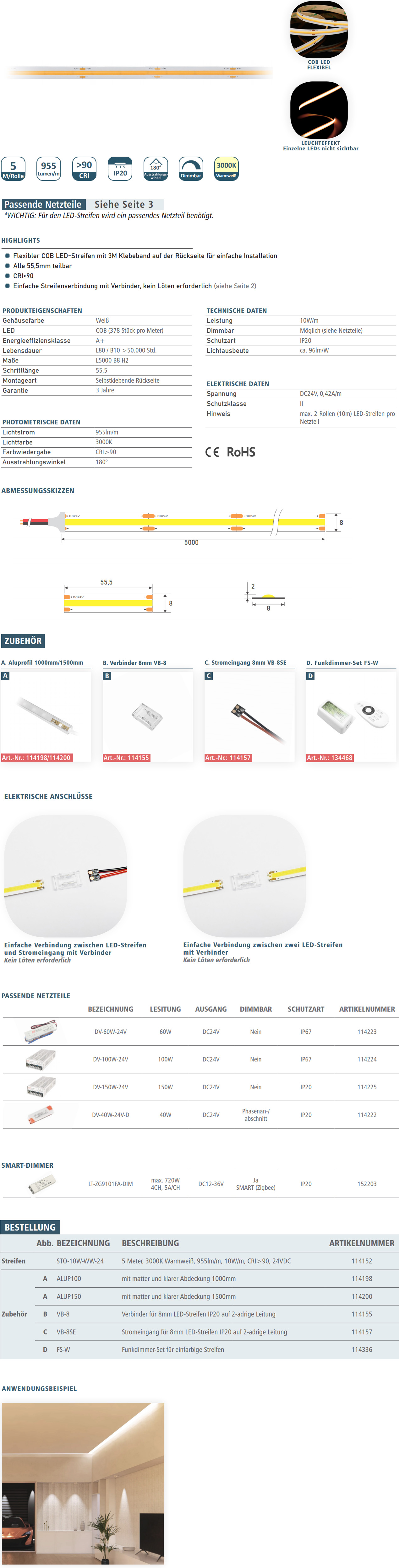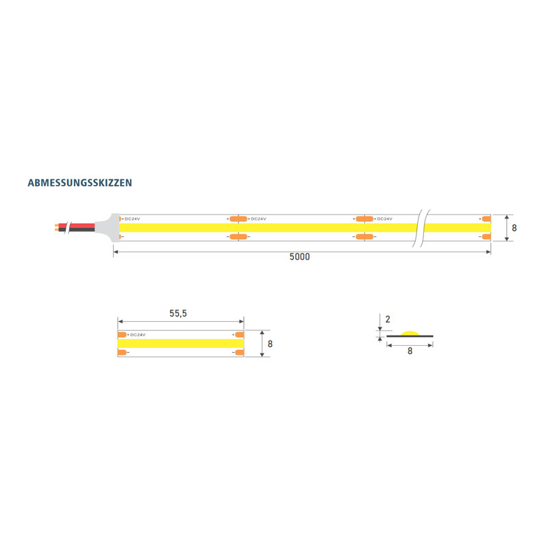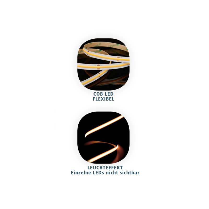 - Flexibler COB LED-Streifen mit 3M Klebeband auf der Rückseite für einfache Installation