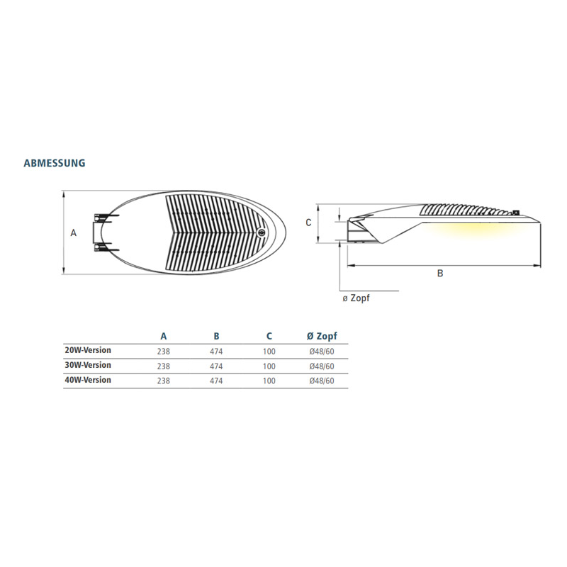 - AC100-265V, PF>0,9, CRI>70, -30°~50°C, 30.000Std